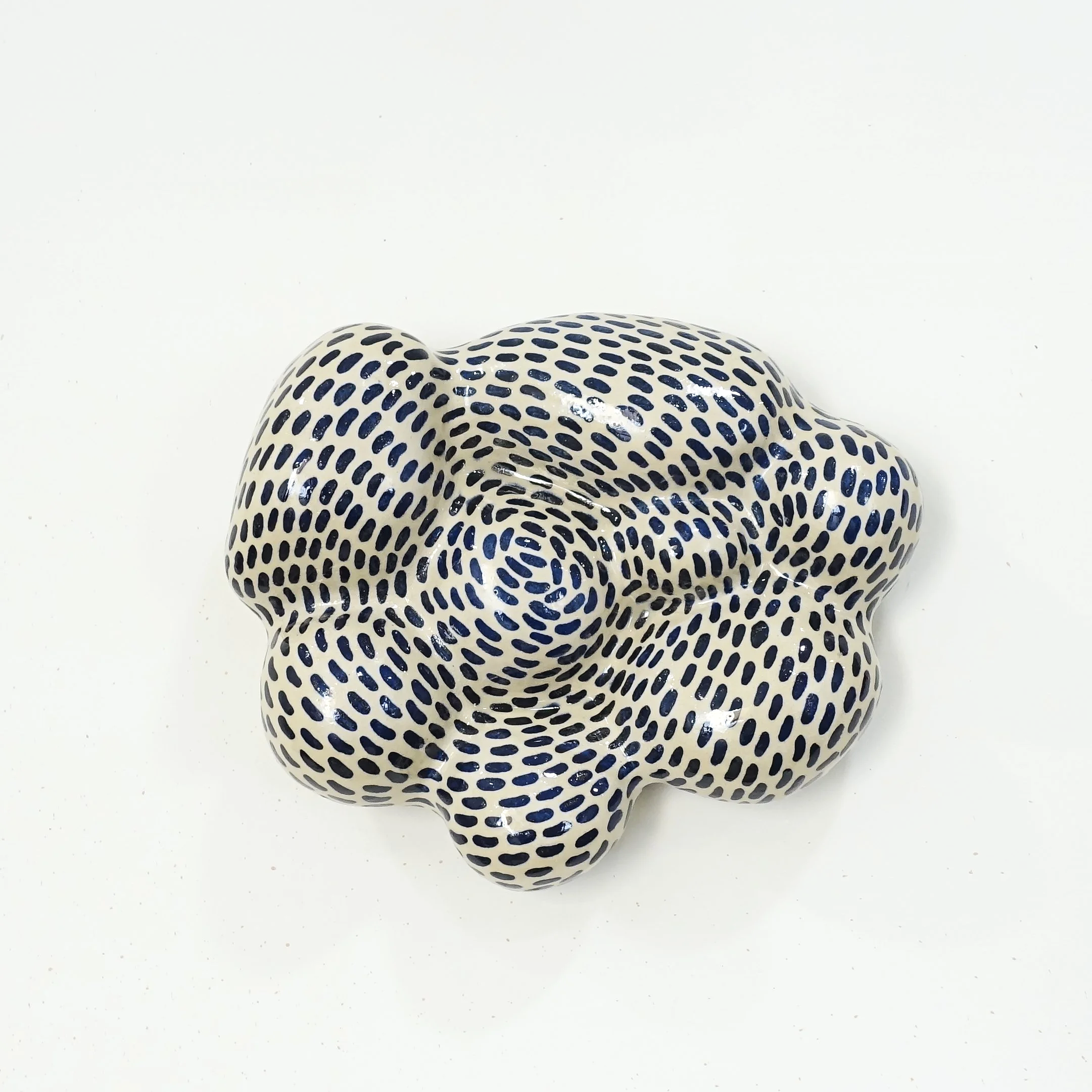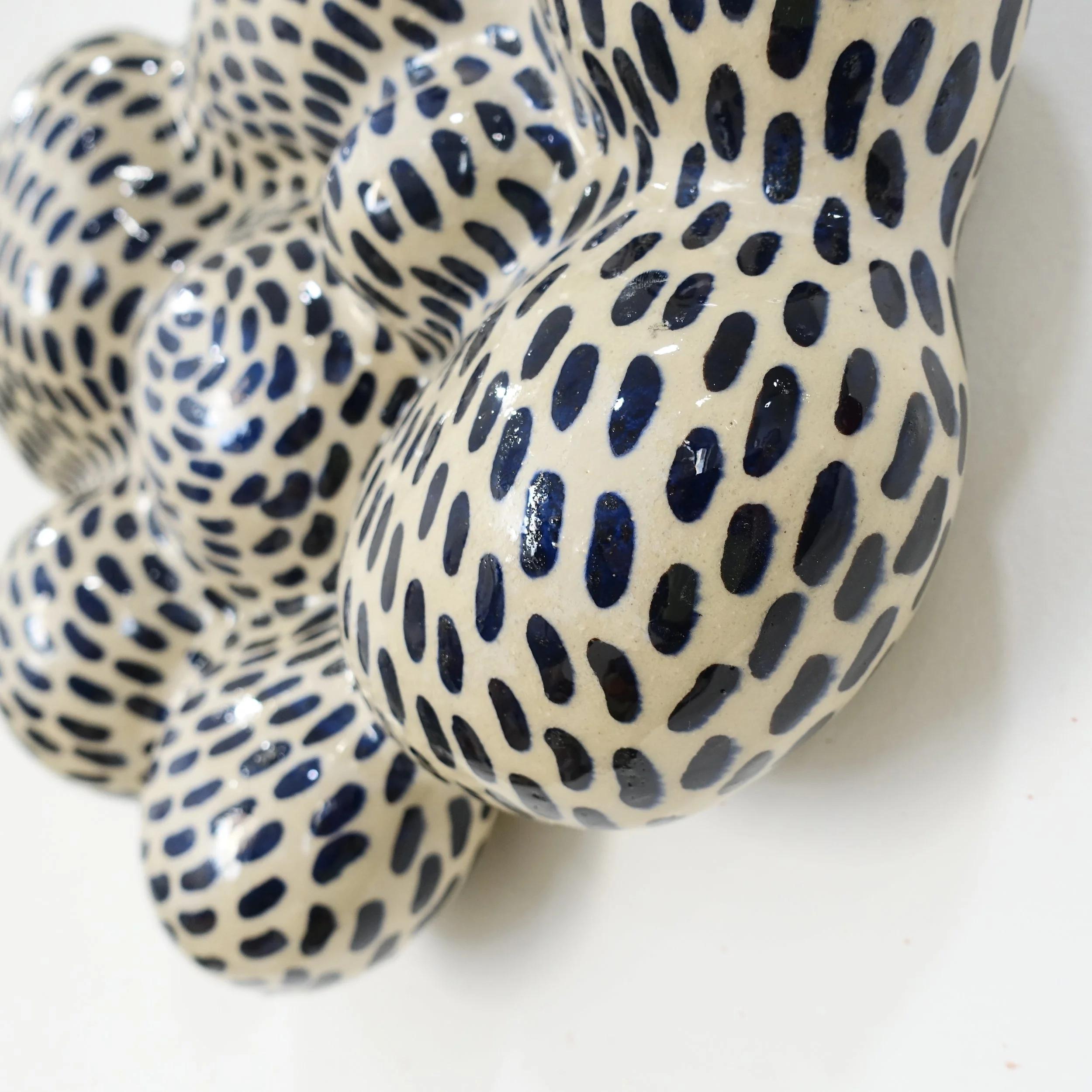 Realizzato completamente a mano in grès avana, lasciato grezzo senza smalto lucido. Decorato con engobbio nero.